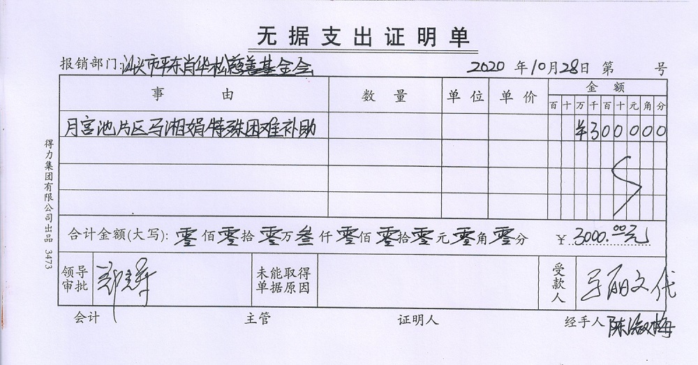 | 1 | 马湘娟 | 货币 | 现金支付 | 特殊困难 | 2020-10-28 | 3000.00 | | 20201028 |