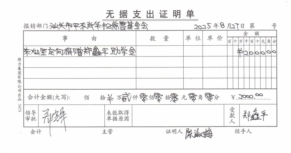 | 15 | 郑鑫平 | 货币 | 现金支付 | 定向捐赠 | 2025-08-27 | 2000.00 | 2025082701 | 20250827 |