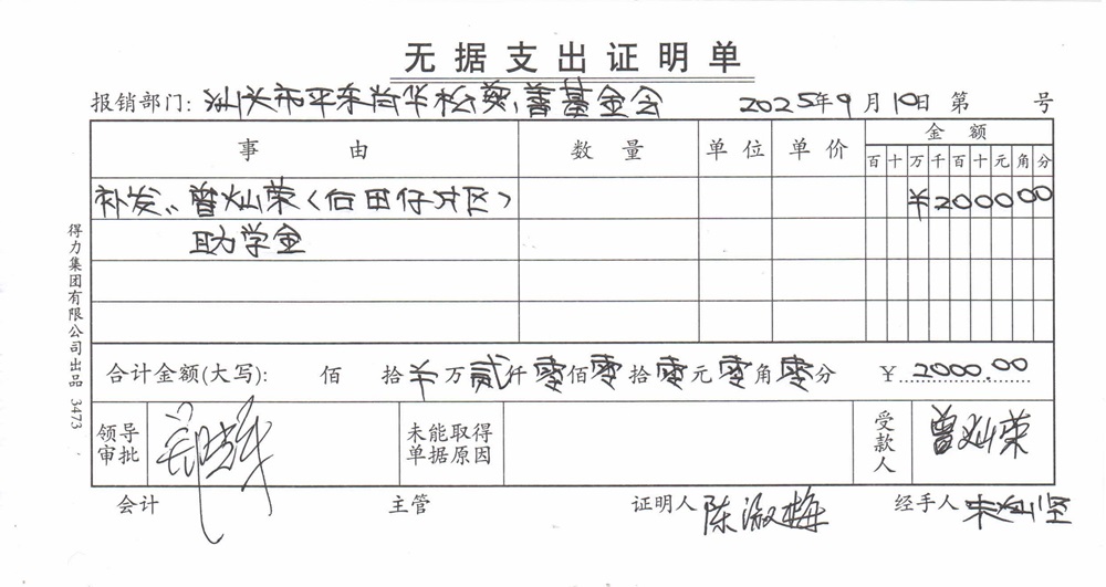 | 10 | 曾灿荣 | 货币 | 现金支付 | 助学金 | 2025-09-10 | 2000.00 | | 2025091002 |