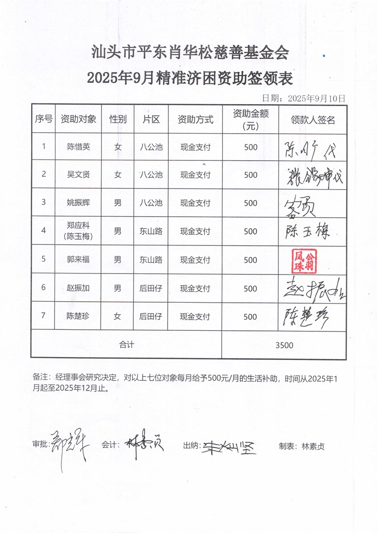 | 12 | 2025年9月份精准济困7户 | 货币 | 现金支付 | 济困 | 2025-09-10 | 3500.00 | | 20250910 |