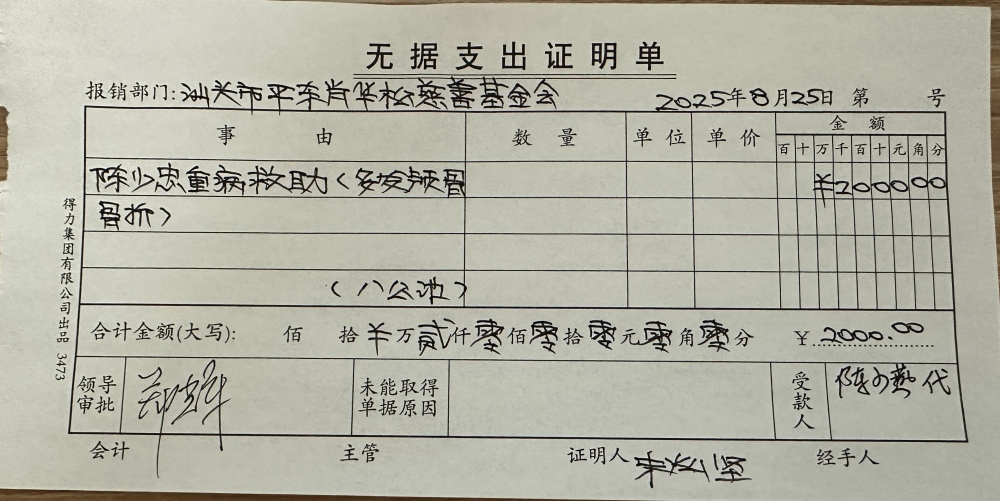 | 16 | 陈少忠 | 货币 | 现金支付 | 重病救助 | 2025-08-25 | 2000.00 | | 20250825 |