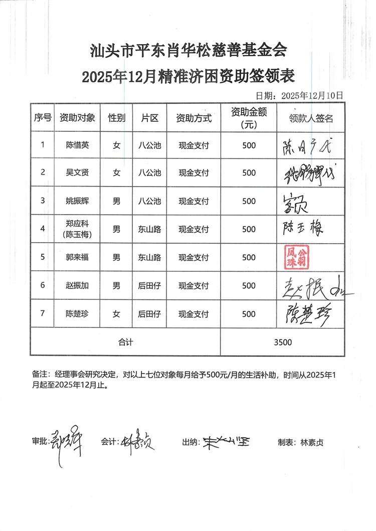 | 3 | 翁继舜 | 货币 | 现金支付 | 重病救助 | 2025-12-25 | 10000.00 | | 20251225 |