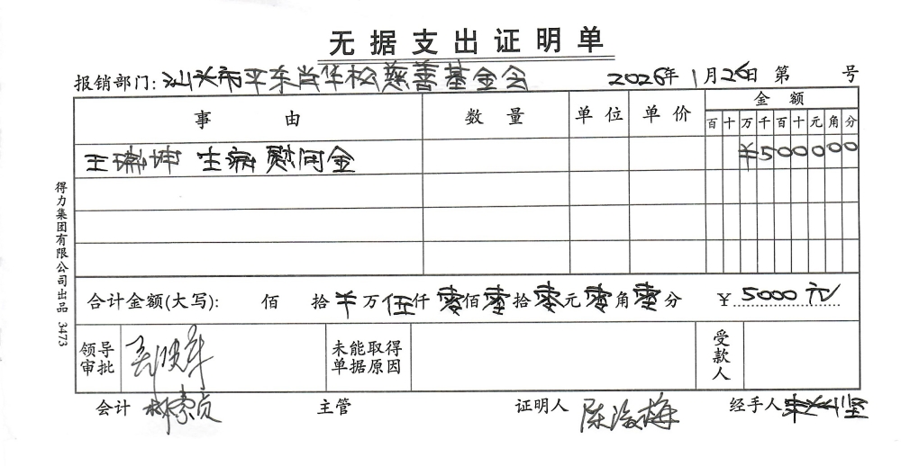 | 1 | 王瑞坤 | 货币 | 现金支付 | 生病慰问 | 2026-01-26 | 5000.00 | | 20260126 |